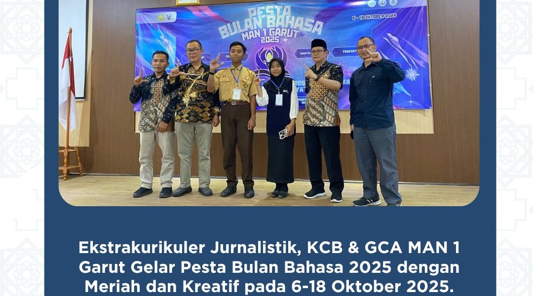 Garut – Tiga Ekstrakurikuler MAN 1 Garut Jurnalistik, KCB (Komunitas Cinta Bahasa), dan GCA (Gabungan Club Academik) berkolaborasi menyelenggarakan kegiatan tahunan “Pesta Bulan Bahasa 2025” yang berlangsung mulai 6 hingga 18 Oktober 2025.