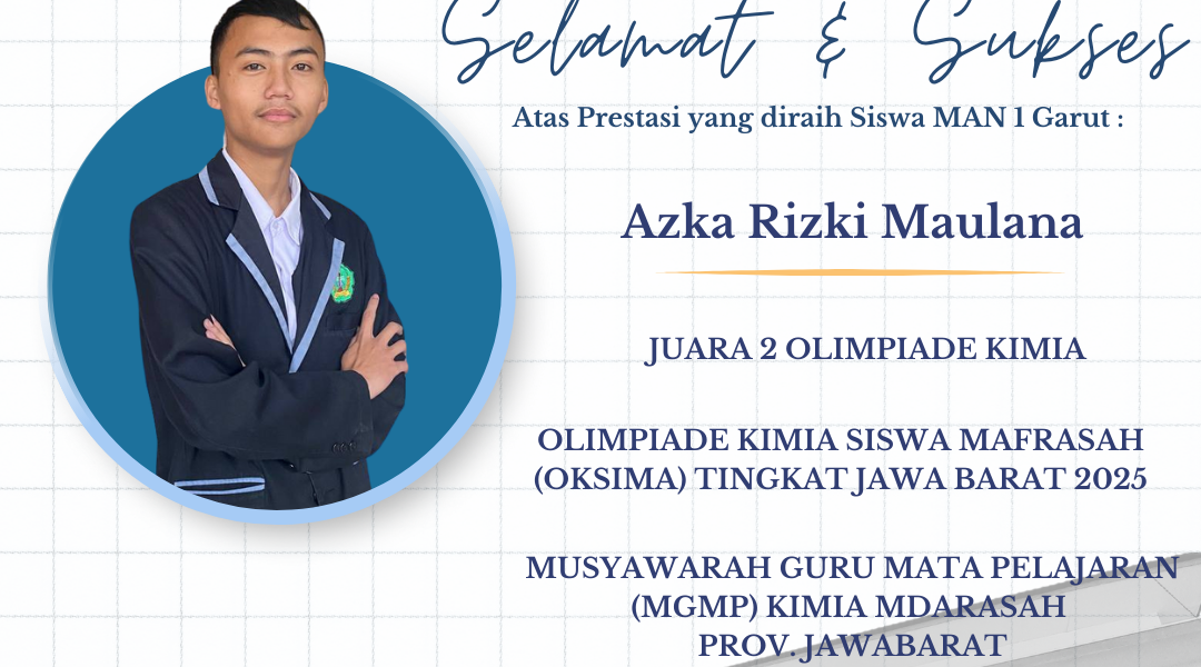 Garut – Azka Rizki M Siswa MAN 1 Garut kembali meraih prestasi sebagai Juara 2 Olimpiade Kimia Tingkat Kabupaten Garut dalam ajang Olimpiade Kimia Siswa Madrasah (OKSIMA) Tahun 2025 pada 08 Desember 2025.